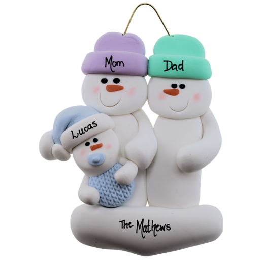 Personalized Blue Baby Family of 3 Christmas Ornament: A Growing Family of Love Celebrate the wonderful arrival of your new baby boy with our Perso...
