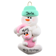 Celebrate the arrival of your precious little girl with our Personalized Pink Baby Family of 2 Ornament. This adorable keepsake features two snowmen—one parent lovingly cradling a tiny baby snowman wrapped in a cozy pink blanket. It’s a heartwarming way to commemorate the joy, wonder, and the beautiful start of your new family journey this holiday season.