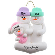 Celebrate the wonderful arrival of your new baby girl with our Personalized Pink Baby Family of 3 Ornament. This adorable holiday keepsake features two snowman parents lovingly watching over their newest addition, nestled snugly in a soft pink blanket. It’s the perfect way to commemorate your first Christmas as a family of three and the joy of your expanding household.