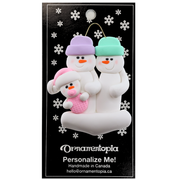 Each ornament is handmade with care in Canada using premium, durable polymer clay. Our artisans pay close attention to every detail—from the gentle expressions on the snowman parents to the tiny, hand-sculpted pink bundle. This high-quality construction ensures your memento remains a vibrant and lasting part of your Christmas tree traditions.