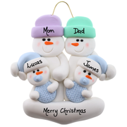 Celebrate the special blessing of your twin baby boys with our Personalized Twin Baby Snowman Family Ornament. This heartwarming holiday keepsake features two snowman parents lovingly cradling two precious baby snowmen, each nestled in a cozy blue blanket. It’s the perfect way to commemorate the arrival of your twins and the double dose of joy they bring to your family of four.