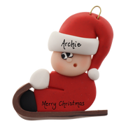 Capture the exhilarating rush of winter fun this holiday season with our Personalized Toboggan Guy Christmas Ornament! This dynamic ornament features a cheerful festive character ready to hit the slopes on a classic toboggan! It's the perfect way to celebrate the adventurer, the winter sports enthusiast, or anyone who loves the simple joy of a thrilling ride this Christmas.