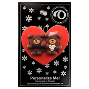 Make this ornament truly special by adding names or a festive message. We can professionally hand letter names above each bear and a family name or wedding date on the red heart below. It makes a thoughtful gift for bridal showers, weddings, or a first anniversary surprise.