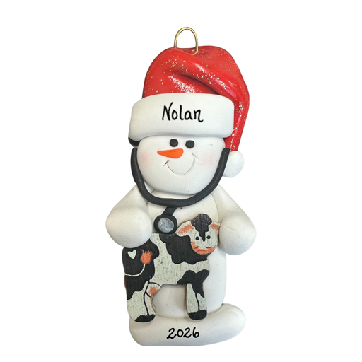 Personalized Snowman Veterinarian Christmas Ornament: Big Hearts & Herd Health Celebrate the dedicated care provided to cows and other large fa...